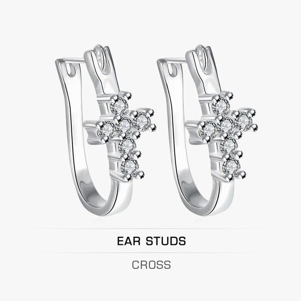 Sterling Silver & Zirconia Cross Eearrings